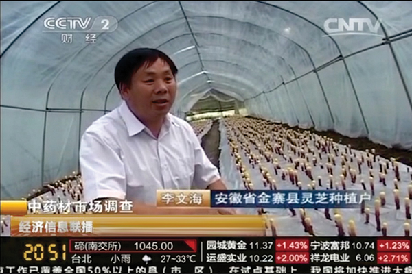5、县政府部门指定康美来基地作为金寨县灵芝种植基地的代表,向央视推 荐。李文海是种植能手的代表。