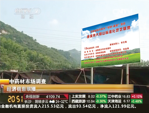 中央电视台财经频道于2014年8月8日晚9点左右,经济信息联播和8月9日早上第一时间,以较长时段报道了康美来沙河灵芝基地以及对基地负责人李文海的采访。