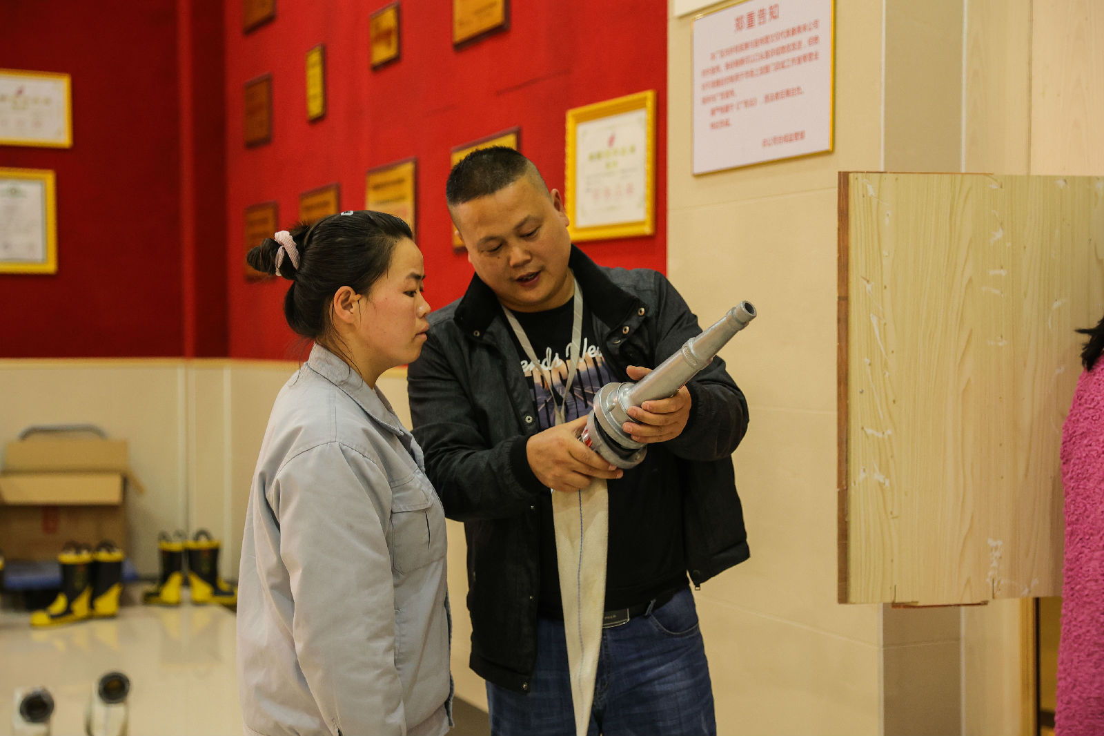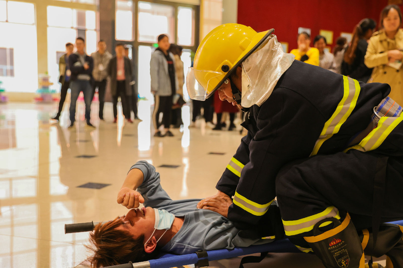随后,参与活动的干部职工在引导员的带领下,从会议室按规划路线疏散至一楼展厅,并井然有序的完成疏散撤离演练。并进行消防水带连接、水枪灭火、灭火器使用的一系列实战操作,牢牢掌握消防器材的使用方法和技巧。