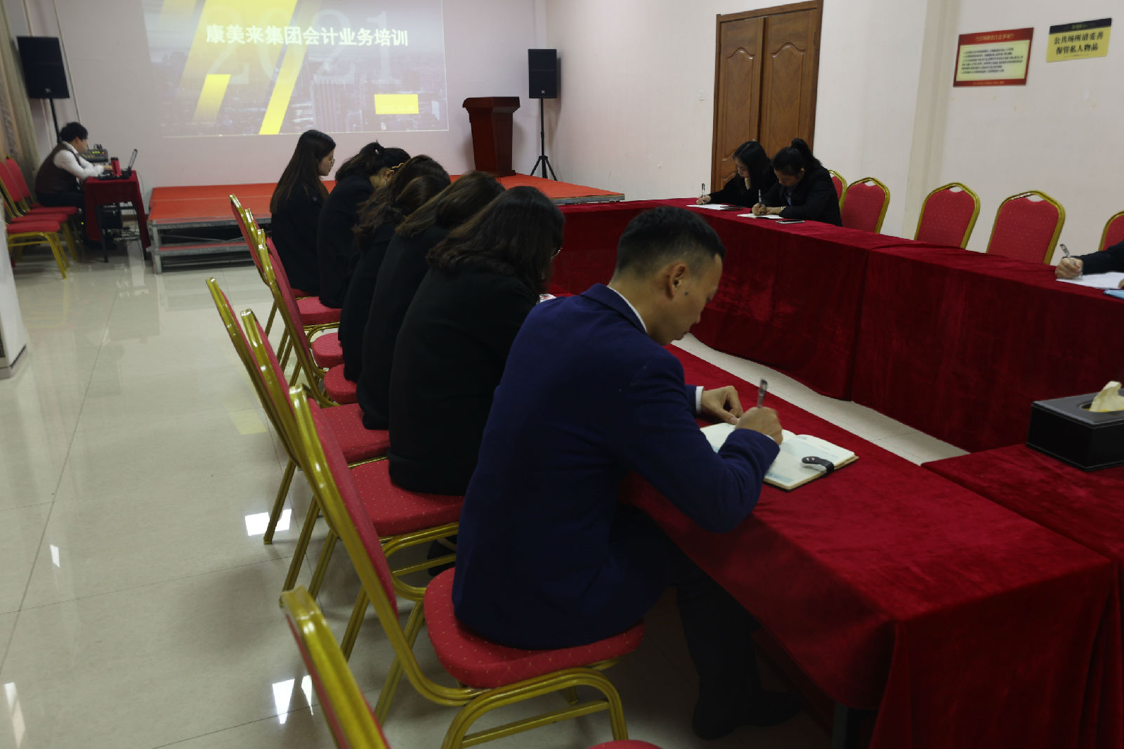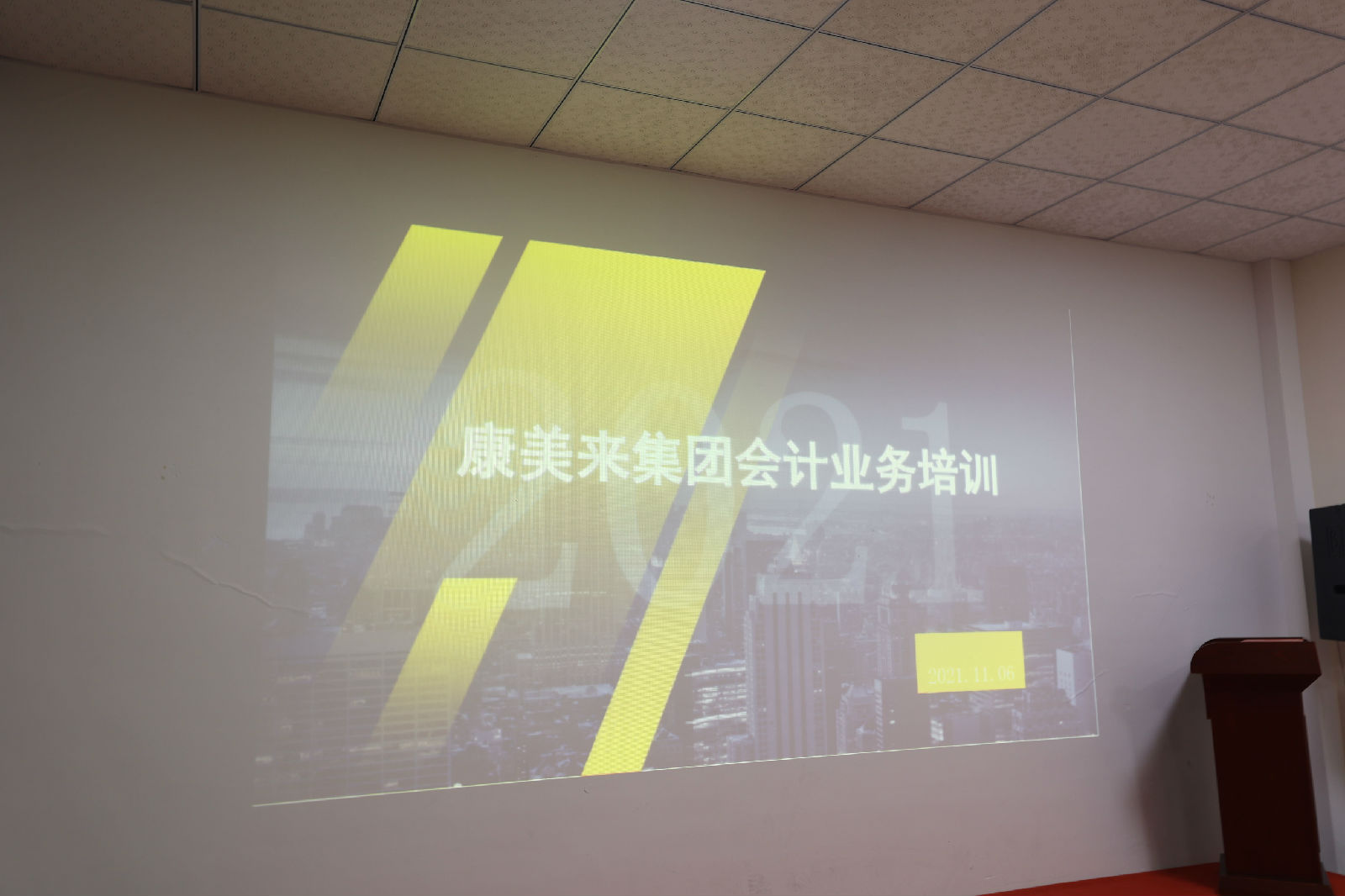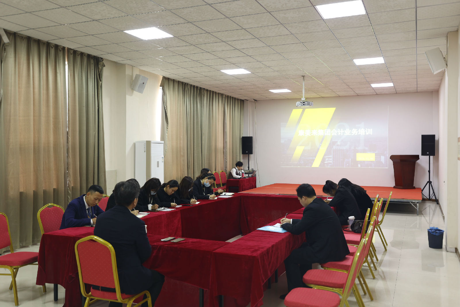 2021年11月6日下午,康美来会计业务培训在总部行政楼灵芝厅举办。
