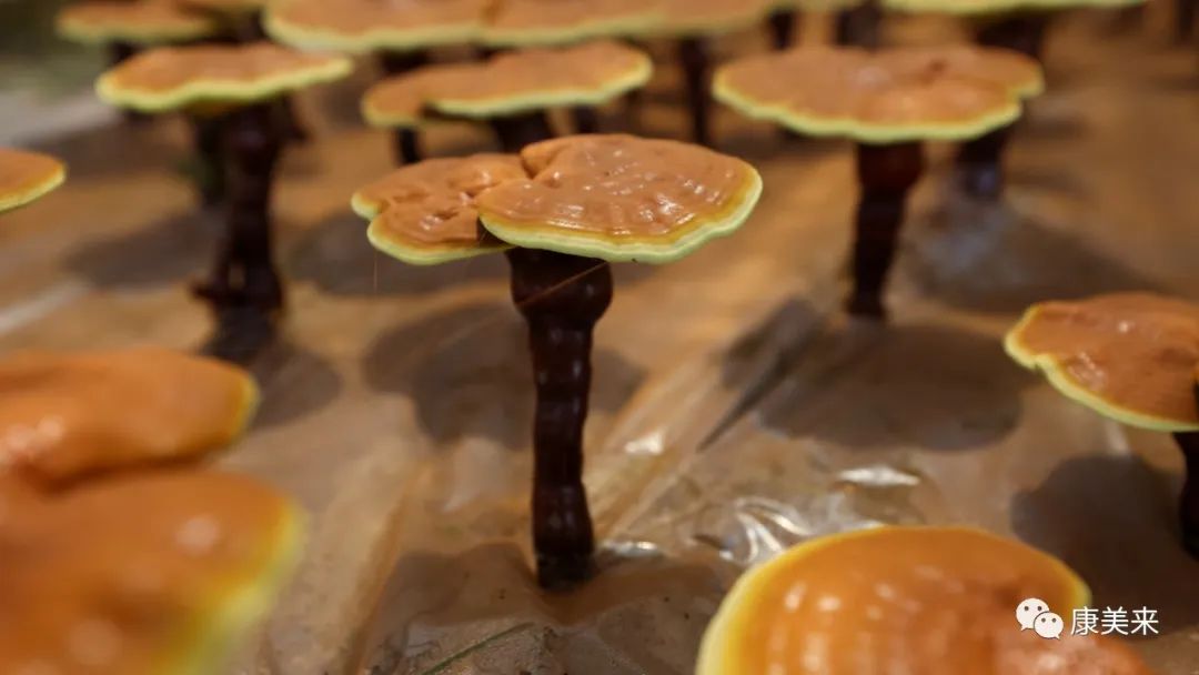 这里的灵芝下地稍晚几周,灵芝菌盖鲜艳嫩娇,一朵朵婷婷玉立,美丽可爱,亦如一朵朵彩色的祥云。