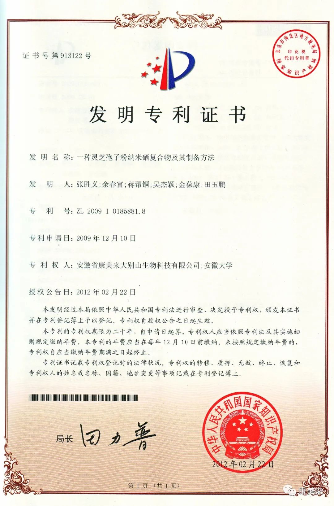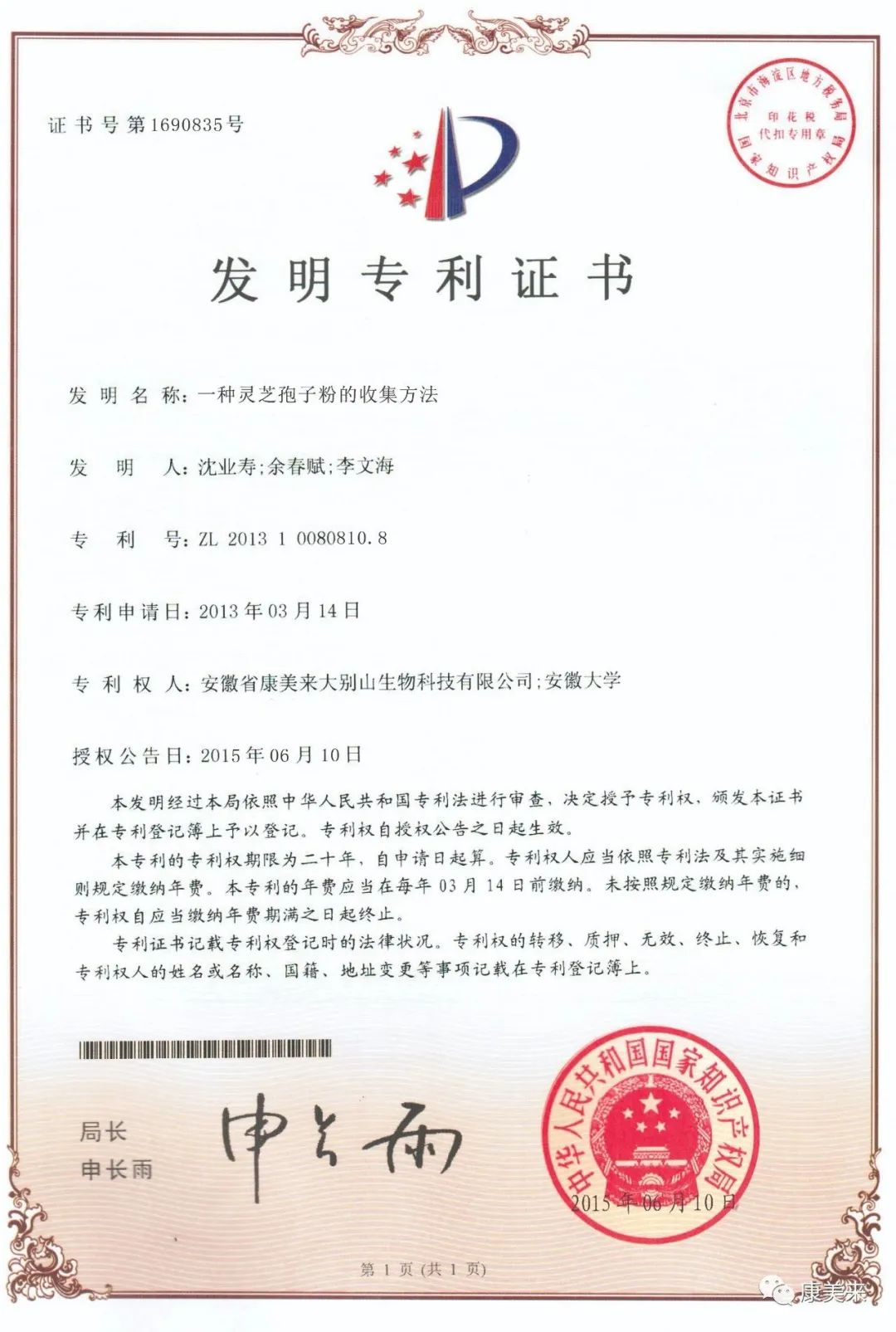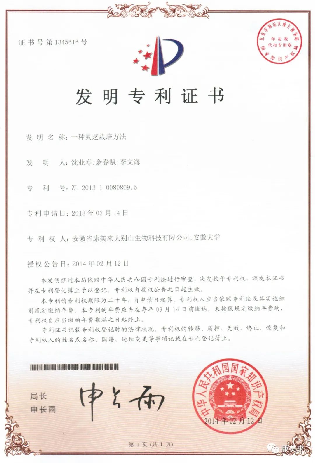 安徽省人民政府向安徽省康美来大别山生物科技有限公司、安徽大学沈业寿教授等单位和个人颁发“安徽省科技技术奖”证书,这是康美来公司与安徽大学开展产学研合作十五年在大别山灵芝研究领域取得的重大成就,得到省、市、县政府的高度肯定。