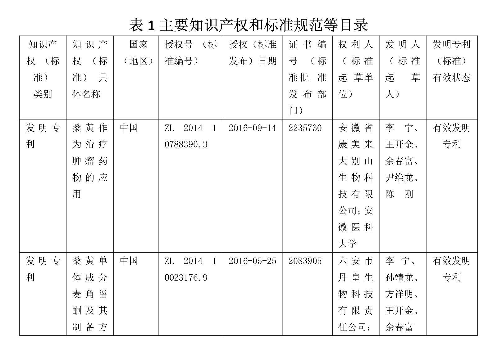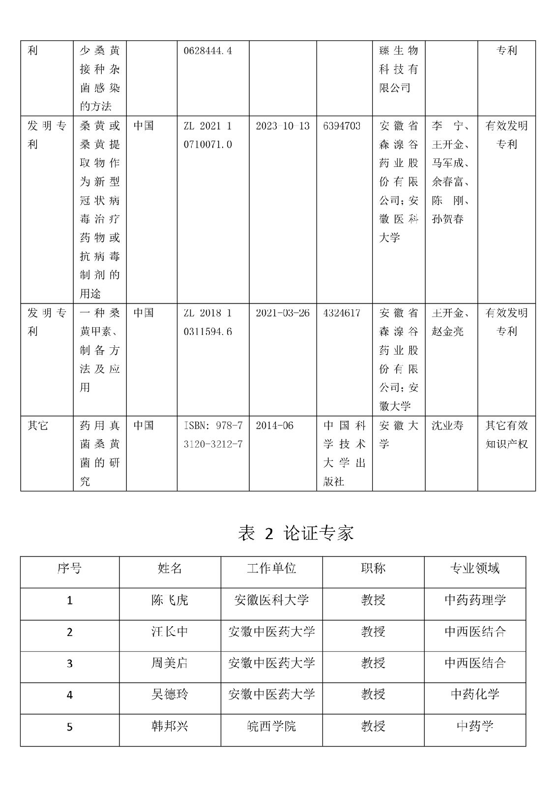 (五)主要完成单位:安徽医科大学、安徽大学、安徽省森湶谷药业股份有限公司、金寨尚臻生物科技有限公司、安徽省康美来大别山生物科技有限公司、安徽省食品药品检验研究院、安徽中医药大学、安徽农业大学。