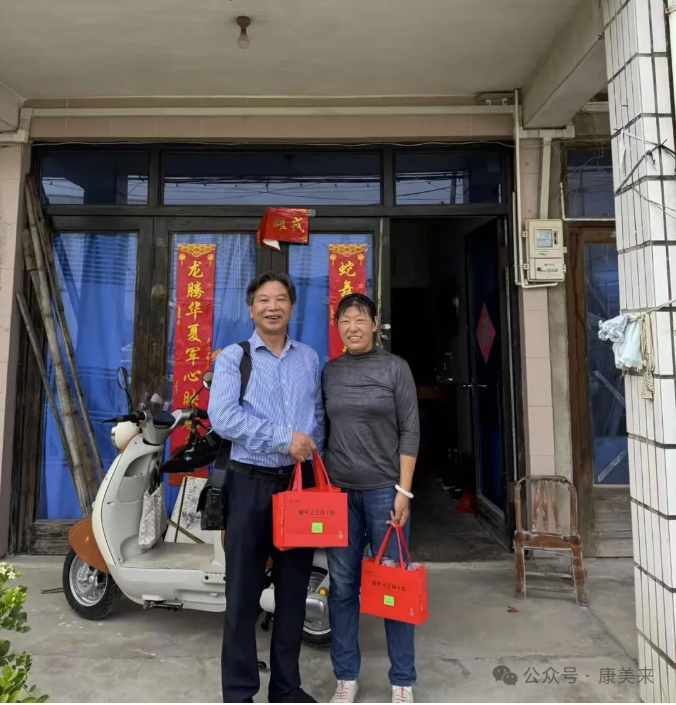 2025年6月4日,余春富董事长专程赴台州市黄岩区江口街道回访创始期消费二十年的老客户罗乐花女士。