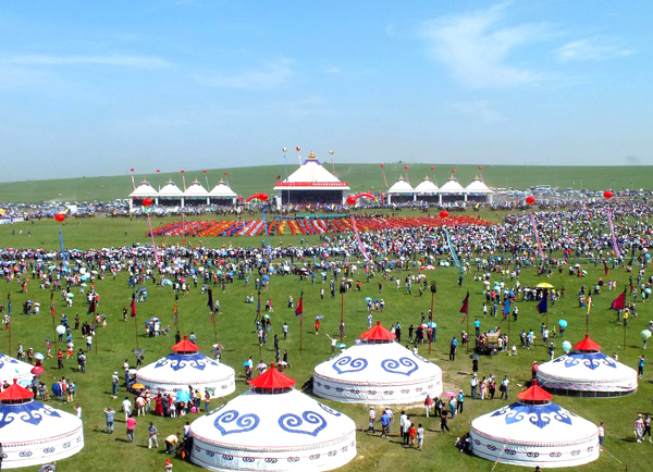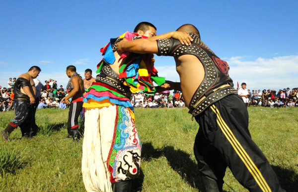 在希拉穆仁草原,每年都要举行盛大的草原那达慕活动,其中的赛马、摔跤和射箭三项竞技是蒙古族“男儿三艺”。