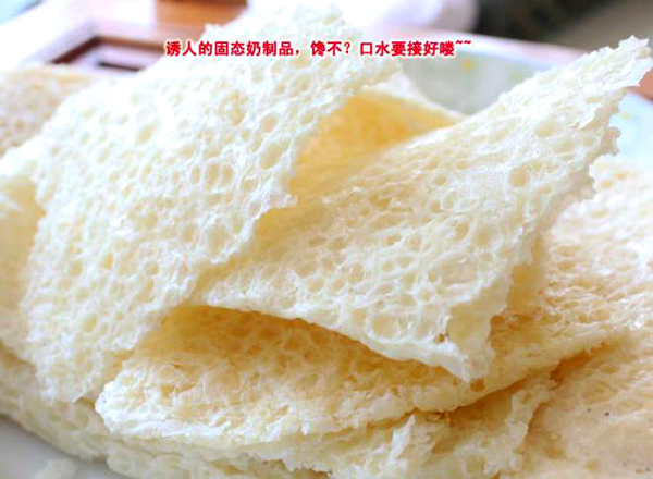 奶制品:奶酪、奶片、奶豆腐、奶皮(泡奶茶吃,还有做拔丝奶皮)等。