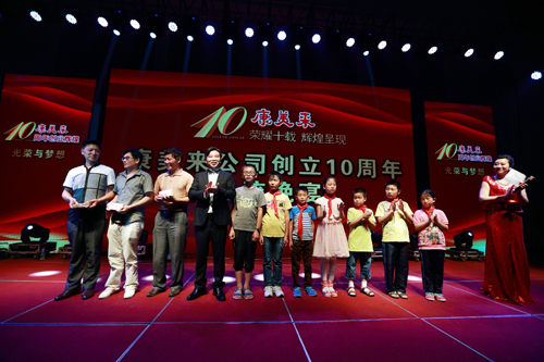 2014年8月,在康美来公司10周年创业辉煌晚会上,余春赋董事长把110400元现金现场捐助给金寨县沙河乡中心小学、燕子河镇树林小学、青山镇姜河中心小学184名贫困学生,支持政府雨露计划。公司自2014年起,发动公司干部和伙伴开展结对扶贫助学,奉献爱心,回馈社会。2014年由过去的117名,增加到184名学生,由2所小学增加到3所小学。扶贫办主任刘泽祥参加捐助活动并讲话。