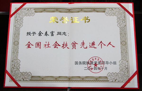 县扶贫办积极推崇“康美来精神”。去年全国扶贫日举行“全国社会扶贫先进个人”推荐活动中,康美来科技有限公司董事长余春富荣获“全国社会扶贫先进个人”光荣称号,活动仪式上,县扶贫办社会扶贫股股长汪维清为余春富颁发荣誉证书,对康美来公司的凡人善举行为表示感谢,并希望余春富董事长带领各位经销商老总们,能始终如一地开展捐资助学活动。